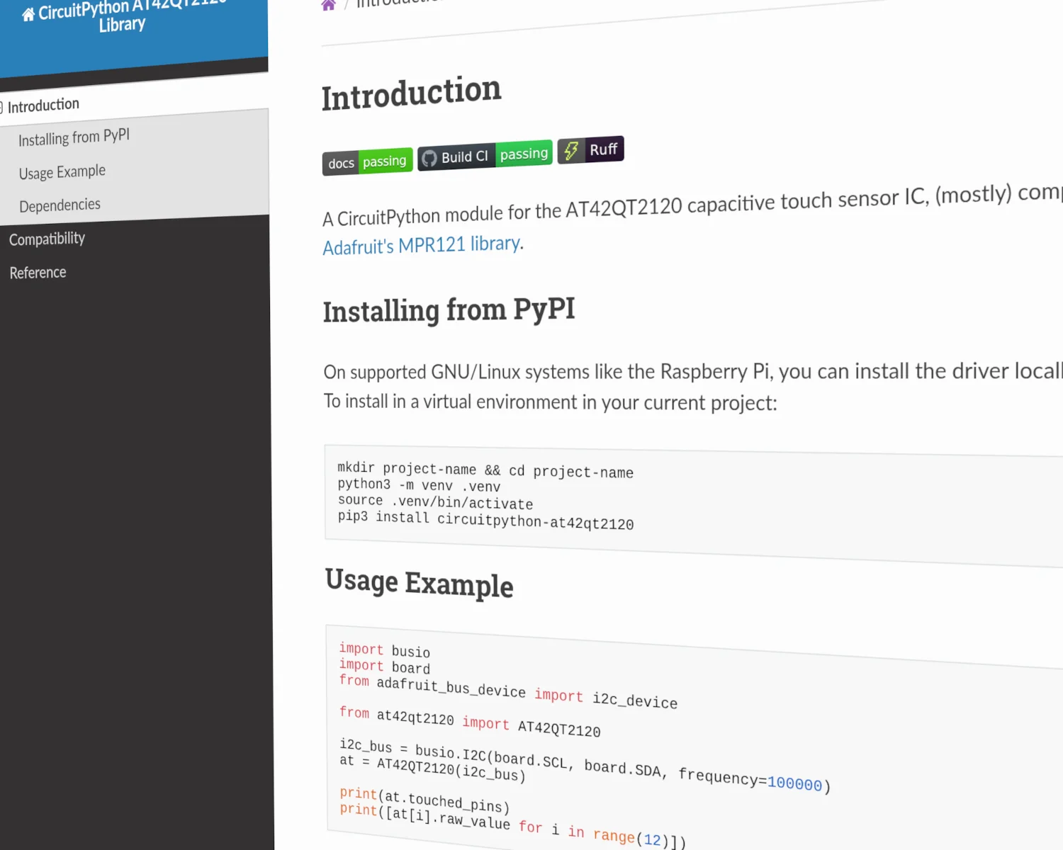 I've been building a new PCB around the AT42QT2120 touch sensor, and to make use of the board I wanted to write a CircuitPython driver for it and publish it for others to use.